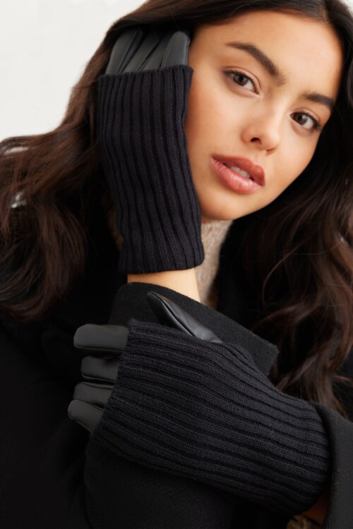 Faux Leather & Knit Gloves